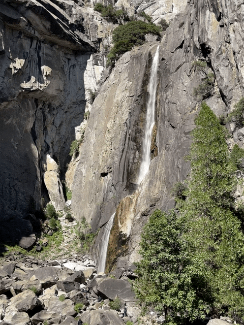 Gestärkt und bereit für weitere Abenteuer machten wir uns erneut auf den Weg mit unseren Fahrrädern. Unsere Route führte uns durch Curry Village, wo wir die charmanten Hütten und die lebendige Atmosphäre genossen. Anschließend fuhren wir weiter zum Indian Village, wo wir mehr über die Kultur und Geschichte der Ureinwohner der Region erfuhren. Unser Höhepunkt war der Besuch der beeindruckenden Yosemite Falls, wo wir die erfrischende Kraft des Wassers bewunderten und uns an der natürlichen Schönheit der Umgebung erfreuten.